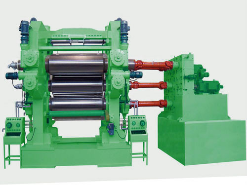 壓延機(jī)是特殊的,用于涂覆輪胎生產(chǎn)中使用的織物或簾線和鋼絲。在壓延機(jī)上進(jìn)行任何類型的粘合操作都是可行的。至于輪胎簾線的壓延,它最初是在立式三輥壓延機(jī)上完成的。這種類型的壓延機(jī)在上輥和中輥之間完成必要的涂層或橡膠層厚度,然后在中輥和下輥之間轉(zhuǎn)移或?qū)訅撼蔀榛摹H缓螅瑢影鍙膲貉訖C(jī)的另一側(cè)返回壓延機(jī),以實(shí)現(xiàn)雙面膠粘。后來,為了提高生產(chǎn)效率,使用了第二臺(tái)層壓機(jī),或者將兩個(gè)三輥壓延機(jī)一個(gè)接一個(gè)地串聯(lián)連接,并在底布層的另一側(cè)涂上膠水。